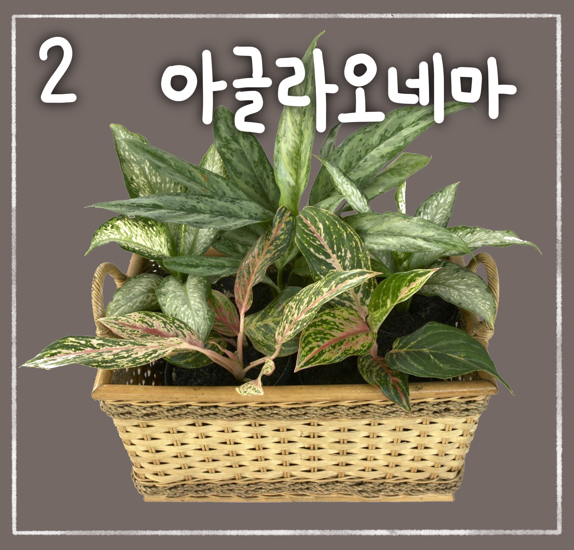 중국과 필리핀이 원산지인 아글라오네마는 해외에서는 주로 중국 상록수(Chinese Evergreen)라고도 불립니다. 종에 따라 잎의 무늬와 색깔이 아주 다양합니다. 영화 '레옹'에서 주인공이 늘 곁에 두었던 식물이 바로 아글라오네마랍니다. 아름답고 키우기 쉬워서 실내 식물로 꾸준히 인기가 있습니다. 벤젠과 포름알데히드를 제거하는 공기 정화 능력도 탁월하다고 하니 새집 증후군을 예방하기 위한 반려식물로도 좋겠습니다.