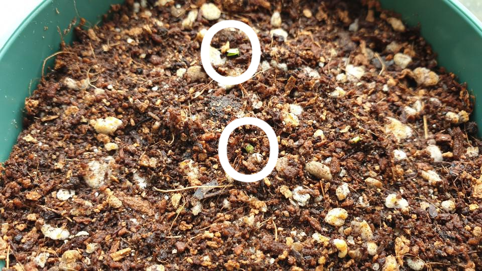 온도가 잘 맞다면 바질은 3일 내외로 싹이 트기 시작합니다. 그러나 완전히 보일 정도로 싹이 나는 것은 아니고, 씨앗에서 뻗어나온 초록색 줄기가 빼꼼 보이는 정도입니다. 위의 사진에서 바질 싹이 3개 있는데 한 번 찾아 보세요.