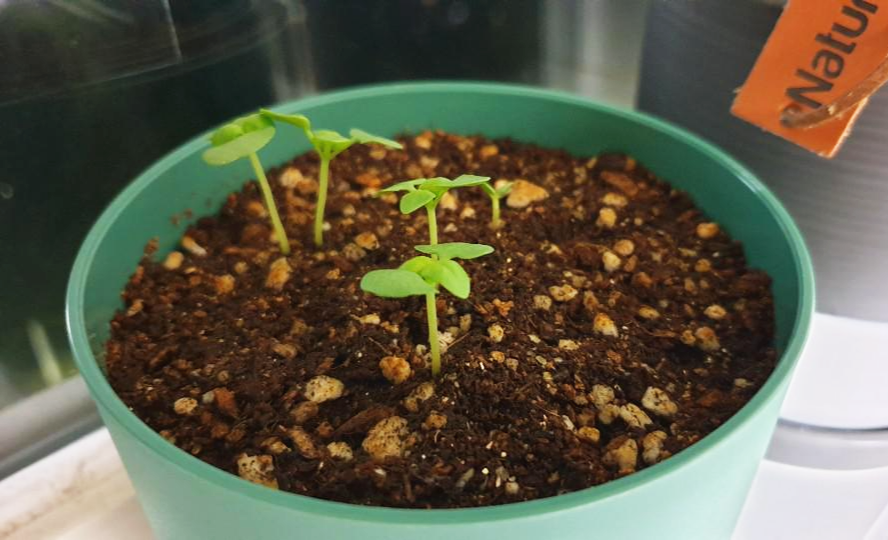 파종한 지 12일째입니다. 3일만에 첫 본잎을 다 키우고 두 번째 본잎을 내고 있습니다. 자라는 속도가 엄청나게 빠릅니다. 물 주기를 지켜주고, 낮 동안 햇빛도 계속 쬐어 줍니다.