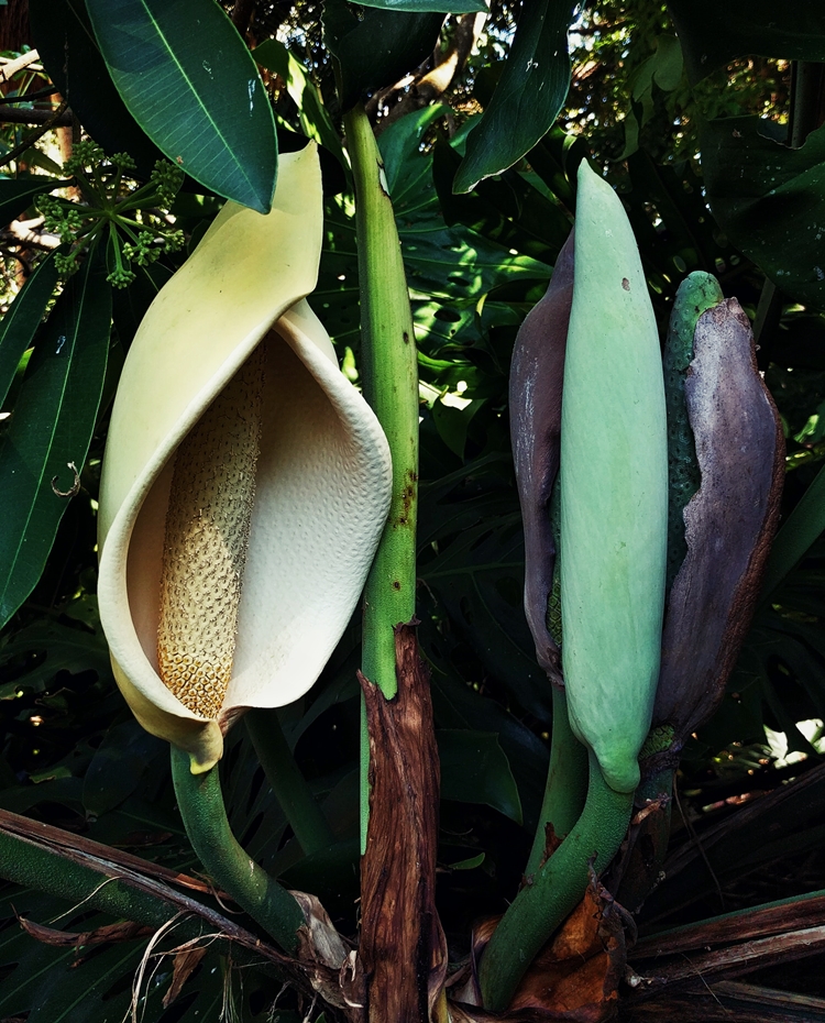 몬스테라는 꽃과 함께 열매도 볼 수 있습니다. 그 중 '델리시오사' 종은 열매가 달콤하고 맛있습니다. 하지만 열매를 맛볼 때는 꼭 다 익은 후에 먹어야 합니다. 몬스테라는 천남성과에 속하는데, 옛날에 천남성과의 식물로 사약을 만들었다고 전해집니다. 마찬가지로 몬스테라의 다 익지 않은 열매에는 독이 있으므로 꼭 열매가 익은 후 먹도록 합니다.